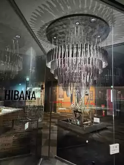 The highlight is the impressive "HIBANA" chandelier, crafted using materials from each stage of knife making.