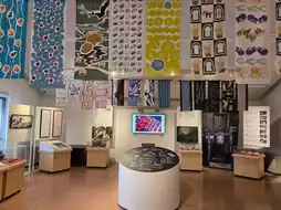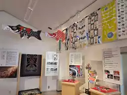 The "TAKUMI EXHIBITION [Traditional Industry Exhibition]" on the second floor showcases the history and manufacturing methods of Sakai's traditional industries, including chusen dyeing, wasarashi (traditional Japanese bleaching), incense, kelp processing, rugs, Sakai May Carp Banners, and Japanese sweets.