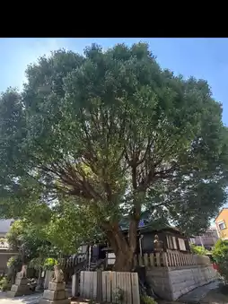 The shrine grounds are home to a city-preserved camphor tree and the city's largest racemo tree. A kagura lion parade is held during the August summer festival.