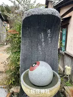 Go through the Ittan Momen Torii gate. When you enter, you will find a sacred black granite stone, a 300-year-old zelkova tree, and a stone eye with a mysterious story.