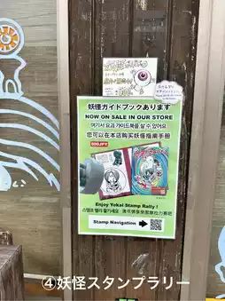 Purchase a yokai guidebook for 120 yen and collect yokai stamps placed at various locations. If you collect more than 20, you will be certified as a yokai museum. There are also prizes depending on the number of stamps you collect.
