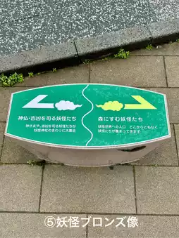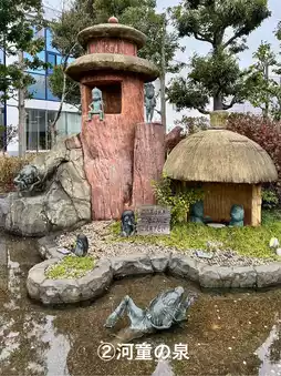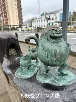 There are a total of nine bronze statues of water-related monsters such as Sanpei, the main character of "Kappa no Sanpei," a kappa, Azukiarai, Akuma-kun, and a raccoon dog.