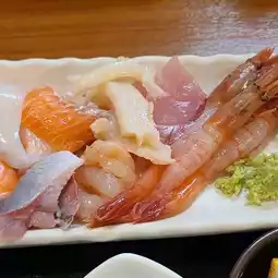 The sashimi set I ordered was filling and satisfying. It came with a variety of seafood, including squid, scallops, shrimp, sweet shrimp, sea bream, and tuna. Each was incredibly fresh, and the savory flavors were enhanced when paired with rice. The sweet shrimp, in particular, was sweet and tender, melting in your mouth, while the tuna had a savory yet light flavor, creating a perfect balance. The accompanying fried horse mackerel had a crispy exterior and a moist interior, creating a contrasting texture that added a unique element to the sashimi. The set menu included rice, soup, and side dishes, making it a filling meal.