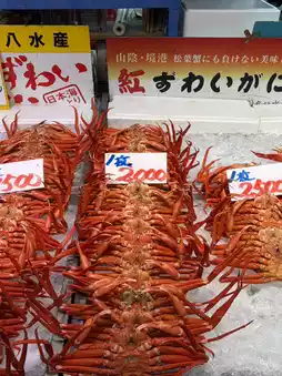 At noon, I headed to Sakaiminato Fishing Port. The freshness of the seafood was astounding! The market was overflowing with snow crab, oysters, and tuna, and the aroma was fragrant. I ordered a freshly cooked snow crab set meal—each person got a whole crab, the meat was sweet and the roe was rich, and my happiness level instantly soared! Watching the fishing boats come and go as I ate, I felt like a local fisherman, immersed in the daily life of the port town.