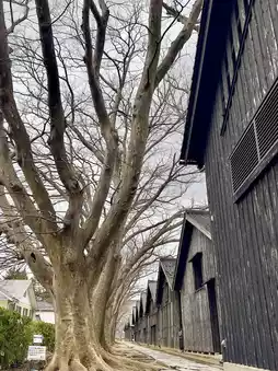 The contrast between the white-walled warehouses and the zelkova trees is stunning, offering picturesque views throughout the seasons. Visitors can not only admire the exterior of the warehouses but also explore the interiors of some of them.