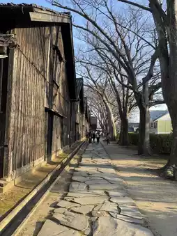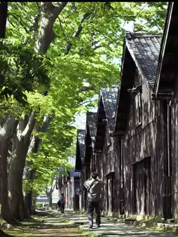 The "Sankyo Warehouse" in Sakata City, Yamagata Prefecture, is a symbol of the area, built in 1893 as a rice storage facility. Even today, the warehouses are actively used, creating a picturesque contrast with their black fences and rows of zelkova trees. This photogenic spot is perfect for a leisurely stroll while soaking in the history and charm of the port town.