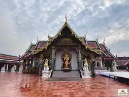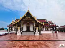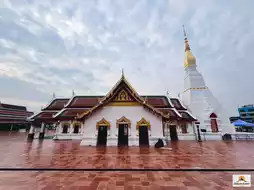 🙏It is a second-class royal temple located prominently on the banks of Nong Han Lake. The pagoda is approximately 24 meters high and was built to cover the footprints of four Buddhas: Phra Kakusandha, Konakaman, Kassapa, and Kotom. The highlight is the square lotus-shaped pagoda decorated with a 247-baht gold umbrella, along with castle arches and doors in all four directions.