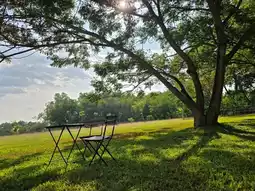 #GetDiscountsWithoutRandomDeals This was my first time visiting this cafe. The atmosphere is so shady. I didn't expect a cafe like this in Sakon Nakhon. There's a large open space for lounging, relaxing, and camping chairs for chilling out and enjoying nature. You can even lay down a mat and relax.