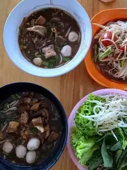 #GetDiscountsWithoutLuck! Tha Ruea Noodles is a must-visit noodle shop for boat noodle lovers. Their signature dishes are beef and pork noodles, with a rich and flavorful broth and fragrant spices. Whether you choose thin noodles, wide noodles, or egg noodles, everything goes together perfectly. The tender, melt-in-your-mouth beef and the perfectly chewy meatballs are especially delicious. They also offer som tam (papaya salad), which is incredibly spicy. For dessert, try the sweet and fragrant crispy ruby soup. The atmosphere is airy, open, and very clean. #ThaRueaNoodles #VisitSakonNakhon #SakonNakhon #Thailand