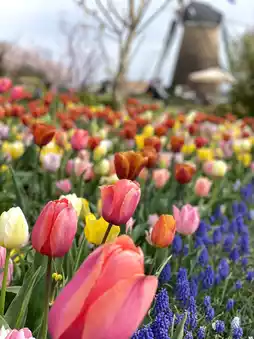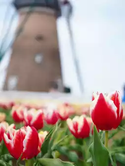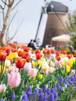 A popular spring event where colorful tulips bloom around the Dutch windmills.