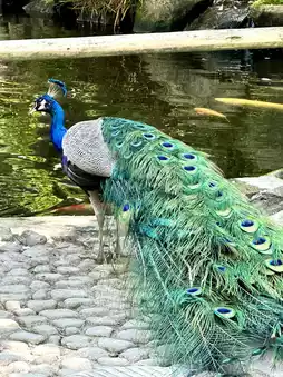 and recently they have bred, adding vibrant colors to the grounds with a dozen or so peacocks.