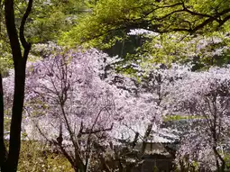 The staircase corridor is quite long, so I recommend wearing comfortable walking shoes. There are various types of cherry blossoms here, including weeping cherry trees and mountain cherry trees.