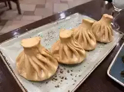 The five-colored noodles, made with pumpkin, spinach, sesame, tomato, and plum, are unique in appearance and taste. Each flavor is subtly felt, and they go perfectly with the soup. The smooth texture and beautiful colors satisfy all five senses.