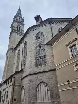 Stepping inside, you're greeted by magnificent ceiling paintings and a pipe organ, embodying the city's culture and history. From the facade to the interior, the iconic beauty of Salzburg abounds. 🎶💫📸