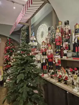 The street is lined with a variety of shops, from luxury brands to souvenir shops. The elegant umbrellas and Christmas decorations are particularly captivating, and the charming signs make for a delightful stroll. ๐๐๐ชง