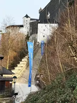 - One of the best option would be by climbing up by foot. It is free of charge and you can just take your time to enjoy the Salzburg view + take the pictures around. However, if you would like to reach to the top of the fortress, you are required to pay for the entrance fee.