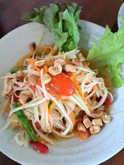 Single-dish meals and side dishes like the delicious basil omelet or the crispy eggplant salad are also excellent.