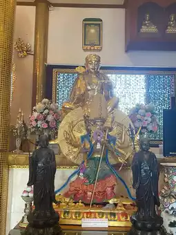 This Chinese temple is located in a serene area by the Tha Chin River in Nakhon Pathom Province. The entrance shares the same route as Wat Rai Khing from Borommaratchachonnani Road.