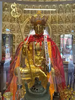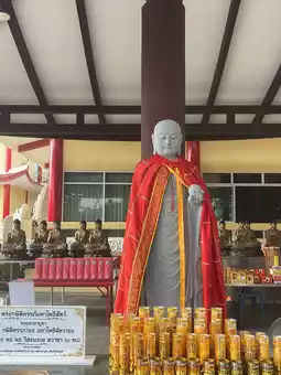 The highlight of the temple is the statue of Phra Ksitigarbha Bodhisattva, carved from granite and standing 13.99 meters tall, imported from China. It is accompanied by sculptures of the entourage of King Yama paying homage to Phra Ksitigarbha.