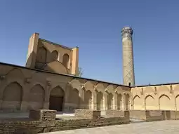 There is an interesting story about Bibi Khanym’s effort to build the mosque. She had intended the mosque to be a surprise for Amir Timur upon his return. The mosque’s architect fell deeply in love with her, and when she urged him to hurry to complete the work he demanded he be allowed to give her a kiss. The kiss left a permanent stain on her cheek; Timur saw it on his return and had the architect executed for his insolence. Legend has it that Bibi Khanym was beheaded too, but in fact she outlived Timur by four years.