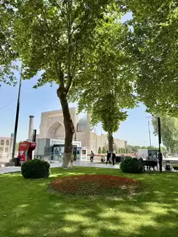 Right in front of the iconic Registan Square, Registan Park is a lovely spot to take a break from sightseeing. In spring, the park is especially beautiful with colorful flowers blooming all around. It’s not just a tourist stop — you’ll see lots of locals relaxing, chatting, or just enjoying the sunshine. It feels like a peaceful pause in the middle of Samarkand’s rich history.