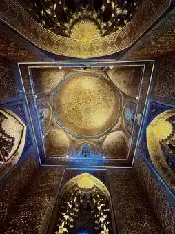 👉Gur-e-Amir Mausoleum (Samarkand): Timur's tomb with dazzling golden interiors.