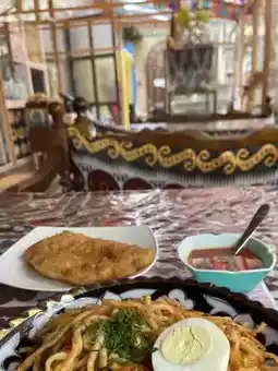 Bibi-Khanym Teahouse, a charming oasis in the heart of Samarkand, is a haven for those seeking to experience the city's rich cultural heritage. As I stepped into the teahouse's cozy interior, I was enveloped in the soothing aroma of traditional Uzbek tea and the warm hospitality of the local staff. The teahouse's decor, adorned with intricate ceramics and colorful textiles, reflects the region's vibrant artistic traditions. I savored the delicate flavors of the tea, paired with an assortment of sweet and savory pastries, while taking in the lively atmosphere of the teahouse. The perfect blend of traditional and modern elements makes Bibi-Khanym Teahouse a must-visit destination for anyone seeking to immerse themselves in Samarkand's cultural essence. Its warm ambiance and delicious tea make it an unforgettable stop on any Central Asian itinerary. The teahouse's charm is truly captivating.