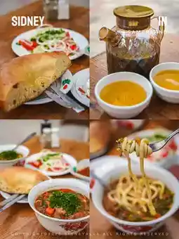 The waiter will bring you your salad, and you can choose from a variety of dishes, each one a hit. I recommend trying the local soup, Chalap, which tastes like yogurt mixed with salty soda and dill. It might be a little strange at first, but the more you drink, the more you enjoy it. It's the perfect way to beat the sluggishness of pilaf rice.