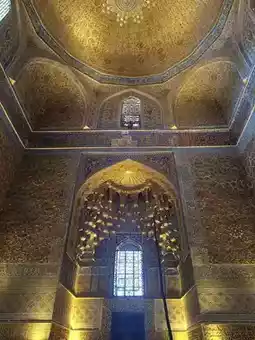 Who can stand before the Gur-e-Amir Mausoleum without being amazed? This magnificent building, the burial place of Tamerlane, has a blue and gold dome that shines like a sky full of stars under the sunlight, and even the patterns on the tiles reflect the imperial glory of the 14th century~✨