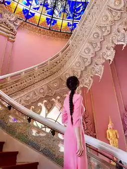 Impressive with the gigantic three-headed elephant statue, the deeper you go, the more overwhelmed you become by the colorful glass architecture pieced together.