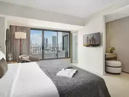 The rooftop outdoor pool offers a city skyline view 🌃, swimming feels like floating alongside the clouds! After a swim, enjoy a cold drink on a beach chair while watching Bangkok bathed in sunset hues—ultimate vacation vibes.