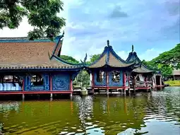 The Ancient City is a world-class open-air museum covering over 800 rai. Construction began in 1963 and took over 10 years to complete its main structure. The Ancient City Floating Market, part of the Ancient City, was born from Khun Lek's explorations of various locales throughout Thailand, gaining a deep understanding of the local landscape and culture. Impressed by the remaining riverside cities, Khun Lek used this as the concept for the construction of the Ancient City Floating City and Floating Market in Bang Pu, Samut Prakan Province.