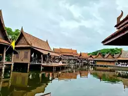 ✨️Ancient City Floating Market is part of Ancient City, the world's largest open-air museum. It gathers old wooden buildings from across the country to create a floating city. This floating market reflects the lifestyle and culture of the riverside communities of the past and is a space that blends ancient Thai culture with contemporary art.