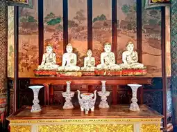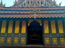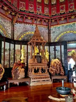 This wooden building combines Chinese and Thai architecture from the Ayutthaya period. It is assumed to have once been a shrine in the Ayutthaya Royal Palace. The ancient city was reconstructed based on images from carved wooden cabinet doors from the Ayutthaya period, which depict the building's current style.
