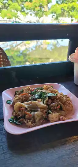 I got off at Keha Station and had breakfast at a restaurant just a minute away. The grandparents who ran it were incredibly kind. I had shrimp pad see ew, which was absolutely delicious :) It was only 55 baht.