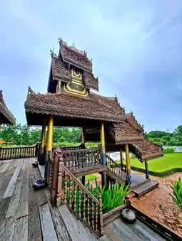 Come see one of the most striking pieces of Ancient City: Wat Chong Kham, a wooden structure in the Shan-style Bagan architecture, which was renovated (reclaimed from original parts) from Ngao District, Lampang Province.