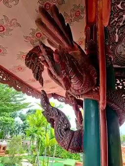 To the right of the ticket checkpoint at the entrance to Ancient City Samut Prakan, there's a beautiful garden and a beautifully architectural pavilion, the Brahmavihara Pavilion.