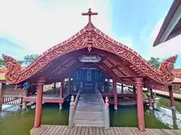 In the Ancient City of Samut Prakan, there are two markets: the floating market and the land market. In the central region, people live along the river, and their way of life is closely connected to the water. People of different faiths coexist. You'll see temples, shrines, churches, and mosques lining both banks. There's also a lively museum and theater.