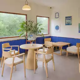 The interior of the shop is decorated in a homey style, focusing on white, blue and wooden furniture as the main tones. It looks simple and comfortable to the eyes. Plus, the space is divided into proportions. It is divided into 3 main zones.