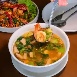 🍲 Fresh Shrimp Soup: Order this bowl to sip hot, it is very refreshing for everyone. The taste is extremely spicy, spicy first, then salty, perfectly balanced, packed with large fresh shrimps.