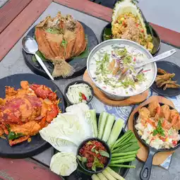 Sit and eat with your family, enjoy the cool breeze, watch the sun slowly set. This is the place for you, Moken 🦀, a seafood restaurant where every dish is fresh. Plus, the restaurant is right by the sea and there are seagulls for the kids to watch.