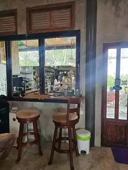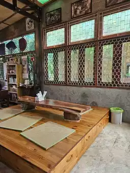 But the secret cafe location for matcha lovers is another shop that if you go to Samut Sakhon, you must stop by and check in. We made a map route that we couldn't believe that there would be a matcha shop hidden here. We drove into the alley quite deep.