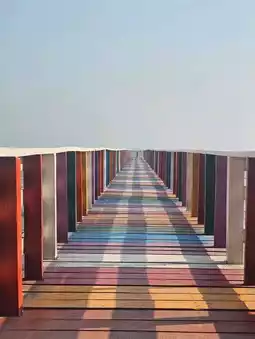 Discover colorful photo spots like the Kahlong Seaside Viewpoint, which features a walkway extending into the sea painted in vibrant colors. At the end of the walkway, you'll find picturesque photo opportunities. Nearby, just 300 meters away, there's the Rainbow Wooden Bridge, equally stunning with its colorful and dynamic design. The atmosphere is fantastic, with refreshing sea breezes. On the way to the Rainbow Bridge, you'll pass a concrete bridge surrounded by lush mangrove forests, offering a serene and shaded environment.