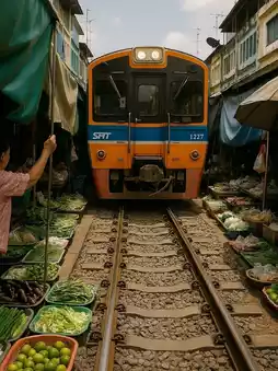 Start at **Umbrella Market** — a popular check-in spot where a train passes through the fresh market. Vendors professionally fold their umbrellas. The footage is both realistic and breathtaking.
