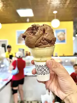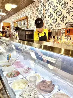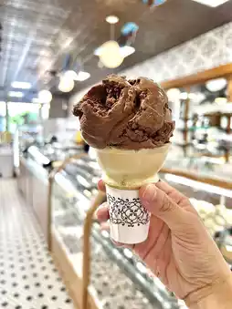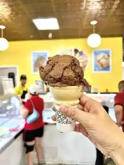 You can ask the store staff to try all the flavors of ice cream in the store before deciding what flavor to buy. The chocolate ice cream I bought has a very rich flavor 🍦, slightly bitter but not too sweet. It is my favorite chocolate flavor, and each scoop is very big, and it is very satisfying to eat!