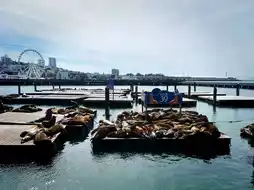 Pier 39 in San Francisco is renowned for its vibrant California sea lion colony, diverse entertainment options, dining, and shopping. Pier 39 offers iconic views of the San Francisco Bay Area, such as Alcatraz Island and the Golden Gate Bridge. It's a popular tourist destination that blends natural wonders with vibrant commerce. 😝