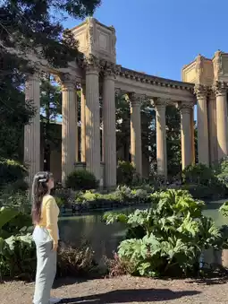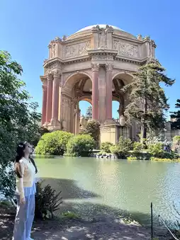 Considered one of San Francisco's most beautiful buildings, the **Palace of Fine Arts** isn't just an exhibition hall; it's a living space of art and romance. The classical-style architecture, blending seamlessly with the lake, evoked the feeling of being in Europe.