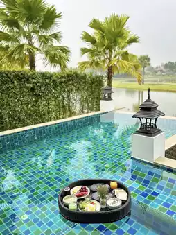 Chiang Mai Dhantara Resort, open for four years, is now at its best. Not only is it beautiful and budget-friendly, but the hotel's operations, service, and facilities are also in their best condition after several years of refinement. The entire hotel has only 21 pool villas, lined up on both sides of the domed lobby. The villas are surrounded by rice fields. Because there are many fish in the rice fields, many large water birds feed, move, and inhabit them in the morning and evening, which is very natural and suitable for secluded vacations!