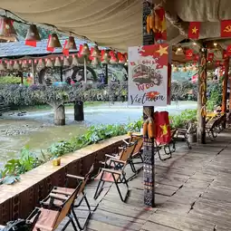 In the bustling Cat Cat Village, we introduce a quiet cafe where you can even see horses and enjoy the view of the river right in front of the building, which is constructed over water! 🤍