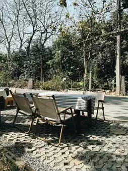A shady shop surrounded by trees and bamboo, like escaping to relax in the forest, camp style, natural view of Maejo University area